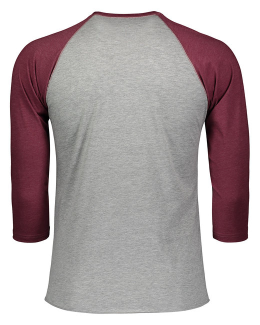 4.5 oz.; 100% combed ringspun cotton fine jersey; CVC Colors are 60/40 combed ringspun cotton/polyester; Flatlock stitched contrast ribbed collar and raglan armholes; Contrast double needle hem raglan 3/4 sleeves; Raw serge shirttail bottom hem; Side seam construction; EasyTear™ label; Machine washable/ tumble dry low; Fit: Adult Unisex - True to Size; Note: Color descriptions indicate Body/Neck and Sleeves; e.g. Vintage Heather/Vintage Navy indicates Vintage Heather shirt with Vintage Navy neck and sleeves.;