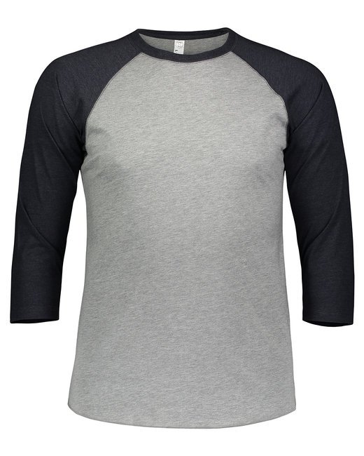 4.5 oz.; 100% combed ringspun cotton fine jersey; CVC Colors are 60/40 combed ringspun cotton/polyester; Flatlock stitched contrast ribbed collar and raglan armholes; Contrast double needle hem raglan 3/4 sleeves; Raw serge shirttail bottom hem; Side seam construction; EasyTear™ label; Machine washable/ tumble dry low; Fit: Adult Unisex - True to Size; Note: Color descriptions indicate Body/Neck and Sleeves; e.g. Vintage Heather/Vintage Navy indicates Vintage Heather shirt with Vintage Navy neck and sleeves.;