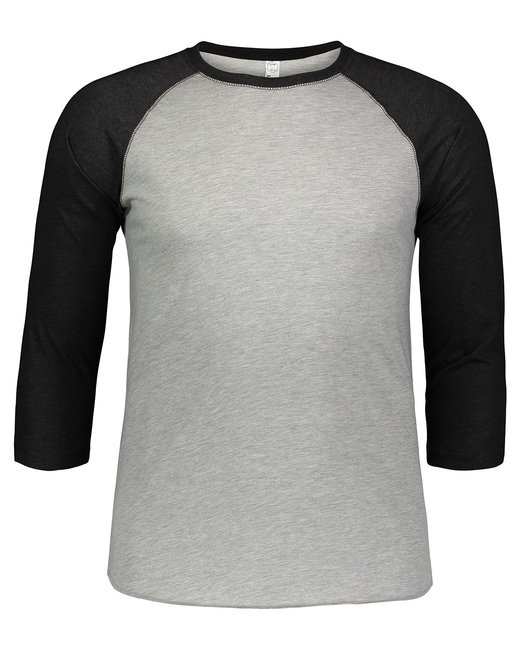 4.5 oz.; 100% combed ringspun cotton fine jersey; CVC Colors are 60/40 combed ringspun cotton/polyester; Flatlock stitched contrast ribbed collar and raglan armholes; Contrast double needle hem raglan 3/4 sleeves; Raw serge shirttail bottom hem; Side seam construction; EasyTear™ label; Machine washable/ tumble dry low; Fit: Adult Unisex - True to Size; Note: Color descriptions indicate Body/Neck and Sleeves; e.g. Vintage Heather/Vintage Navy indicates Vintage Heather shirt with Vintage Navy neck and sleeves.;