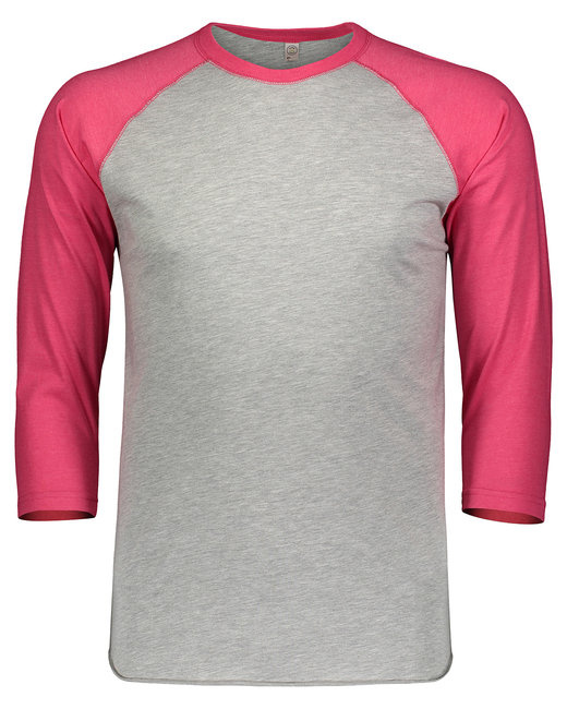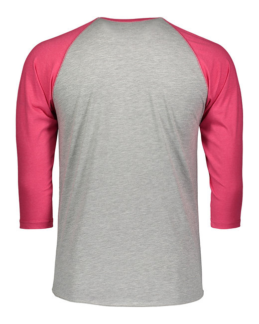 4.5 oz.; 100% combed ringspun cotton fine jersey; CVC Colors are 60/40 combed ringspun cotton/polyester; Flatlock stitched contrast ribbed collar and raglan armholes; Contrast double needle hem raglan 3/4 sleeves; Raw serge shirttail bottom hem; Side seam construction; EasyTear™ label; Machine washable/ tumble dry low; Fit: Adult Unisex - True to Size; Note: Color descriptions indicate Body/Neck and Sleeves; e.g. Vintage Heather/Vintage Navy indicates Vintage Heather shirt with Vintage Navy neck and sleeves.;