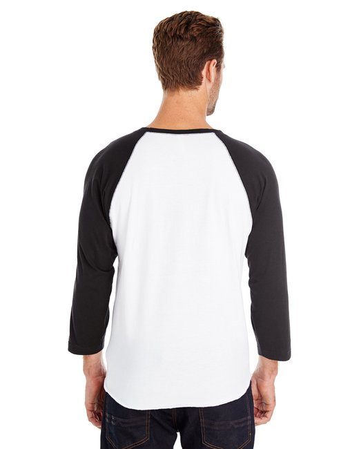 4.5 oz.; 100% combed ringspun cotton fine jersey; CVC Colors are 60/40 combed ringspun cotton/polyester; Flatlock stitched contrast ribbed collar and raglan armholes; Contrast double needle hem raglan 3/4 sleeves; Raw serge shirttail bottom hem; Side seam construction; EasyTear™ label; Machine washable/ tumble dry low; Fit: Adult Unisex - True to Size; Note: Color descriptions indicate Body/Neck and Sleeves; e.g. Vintage Heather/Vintage Navy indicates Vintage Heather shirt with Vintage Navy neck and sleeves.;