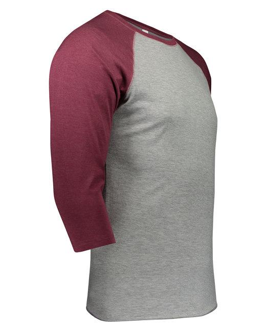 4.5 oz.; 100% combed ringspun cotton fine jersey; CVC Colors are 60/40 combed ringspun cotton/polyester; Flatlock stitched contrast ribbed collar and raglan armholes; Contrast double needle hem raglan 3/4 sleeves; Raw serge shirttail bottom hem; Side seam construction; EasyTear™ label; Machine washable/ tumble dry low; Fit: Adult Unisex - True to Size; Note: Color descriptions indicate Body/Neck and Sleeves; e.g. Vintage Heather/Vintage Navy indicates Vintage Heather shirt with Vintage Navy neck and sleeves.;