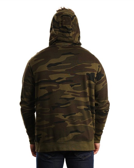 6.8 oz French Terry, 100% cotton; Black Camo: 70% cotton, 30% polyester; enzyme washed; front pouch pockets; rib bottom and cuffs; nylon zipper;
